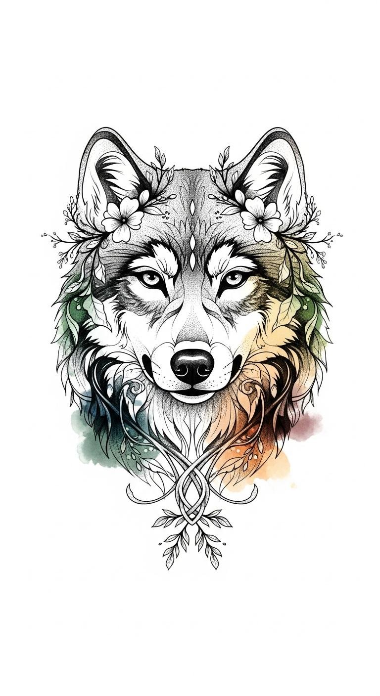 Floral wolf designs embody wolf flower symbolism, representing a harmonious blend of wild spirit and natural beauty.