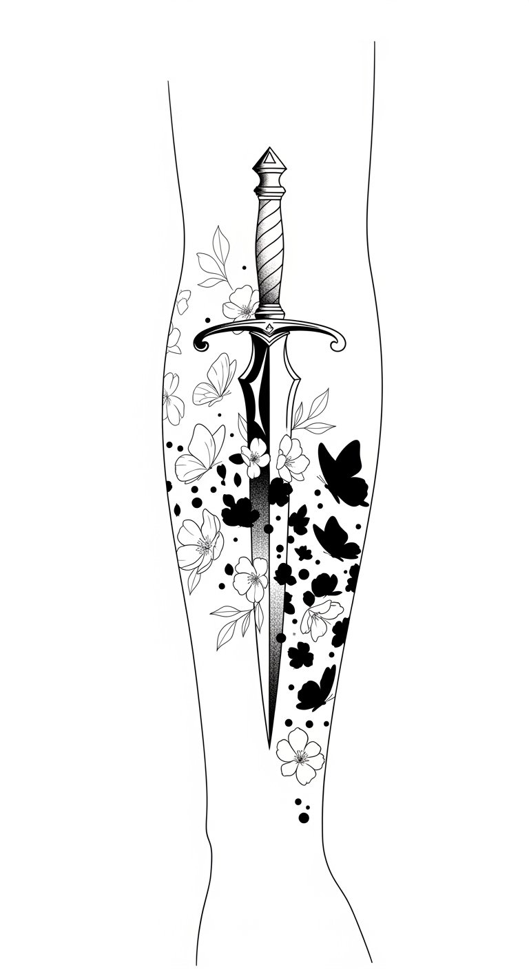 This design transforms the clinical reality into a narrative of change: the scalpel represents decisive action and the difficulty of letting go, the scar-line stitches acknowledge the marks that remain, and the butterflies and blossoms growing from the scars symbolize healing, rebirth, and acceptance. The fine-line, minimalist aesthetic keeps the piece intimate and contemplative; placement along the forearm or ribcage allows for personal visibility or concealment, mirroring the choice between showing and hiding one’s past.