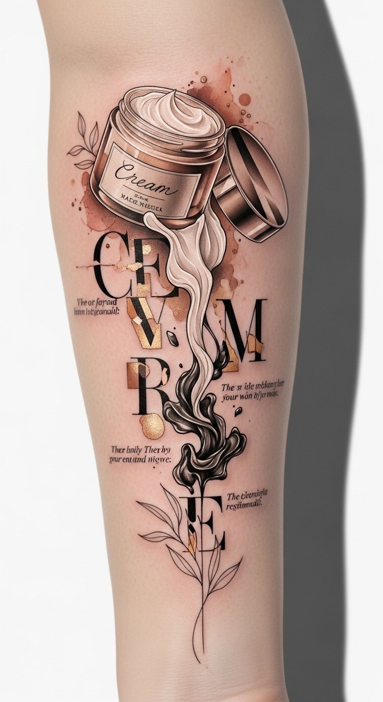 When ink meets the idea of removal, this design captures the tension between permanence and choice: the botanical vine symbolizes growth and identity, the translucent cream-like swirls evoke non-invasive remedies and the ephemeral promise of change, and the tiny clock faces reference time’s role in fading and healing.