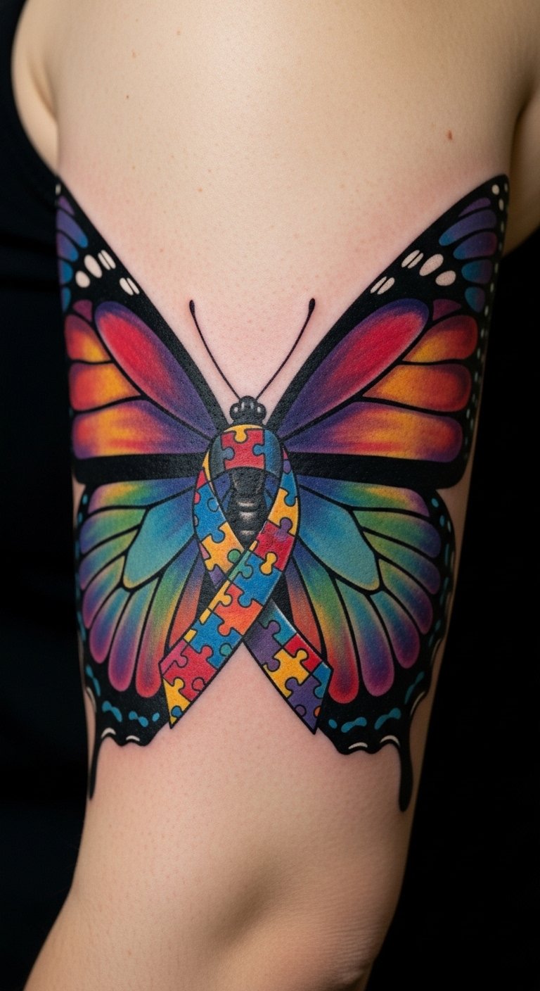 Have you ever considered how a tattoo can embody the spirit of individuality and resilience? Each design tells a unique story, whether it’s a colorful butterfly adorned with puzzle patterns or a minimalist piece reflecting awareness. These tattoos not only celebrate autism but also serve as powerful symbols of personal journeys. As we explore these inspiring ideas, you’ll discover how art can beautifully represent the essence of embracing one’s true self. What will resonate with you? The butterfly symbolizes transformation and freedom, the puzzle motifs represent neurodiversity and the many facets of identity, and the watercolor palette conveys emotion and joy; placed on the forearm it becomes a visible affirmation of pride and resilience, while on the shoulder it reads as a more intimate, protective emblem.