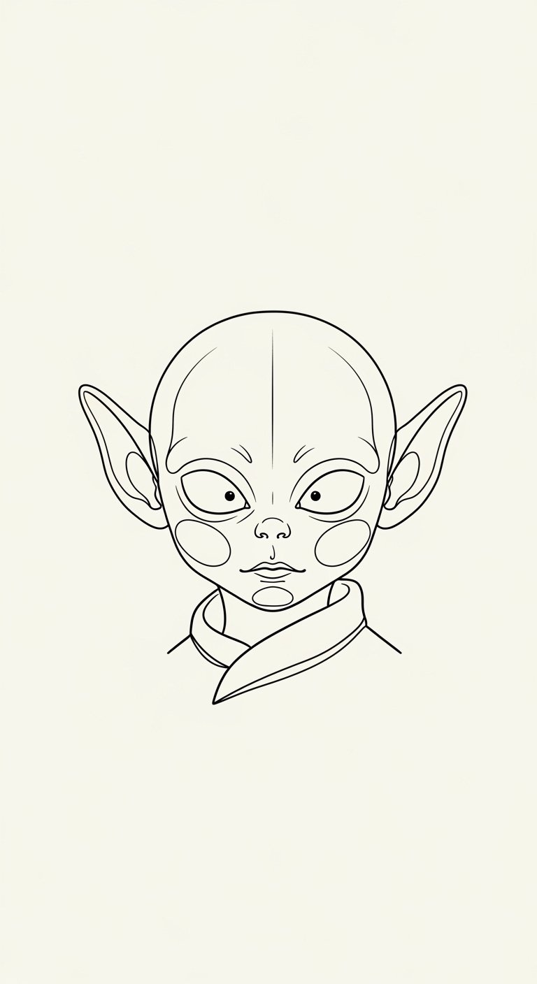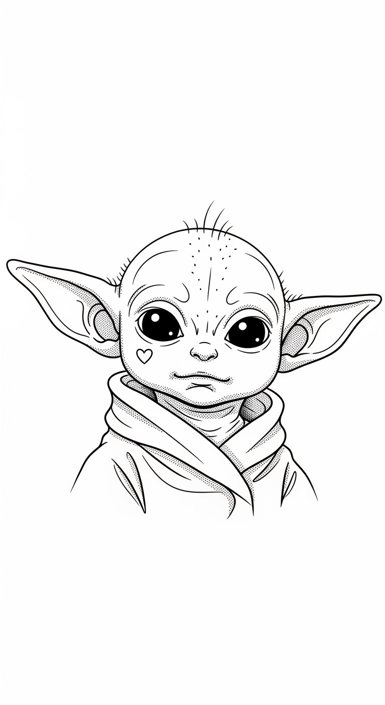 A minimalist Baby Yoda outline captures the essence of this beloved character with elegance and simplicity.