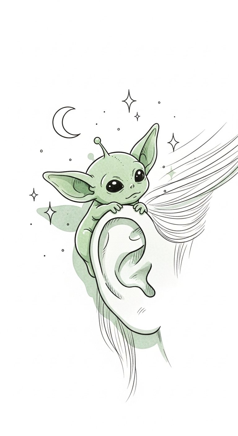 With each glance, you’ll feel inspired to embrace your own adventurous spirit, just like your favorite little Jedi. The placement behind the ear keeps the design intimate and easily hidden or revealed, symbolizing a personal, quiet connection to wonder and resilience.