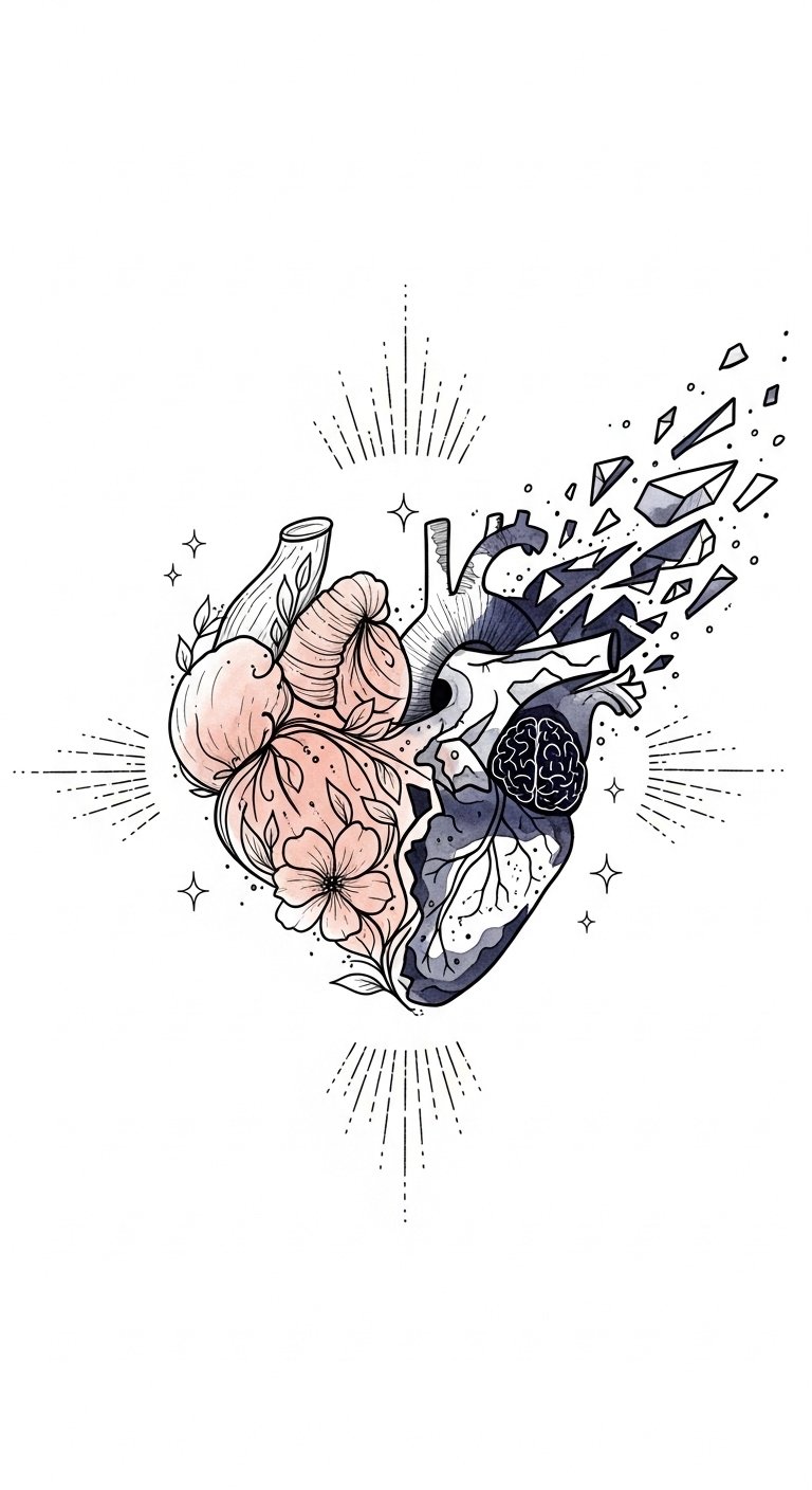 The soft watercolor blush conveys warmth and emotional healing, while the clean line art keeps the piece timeless.