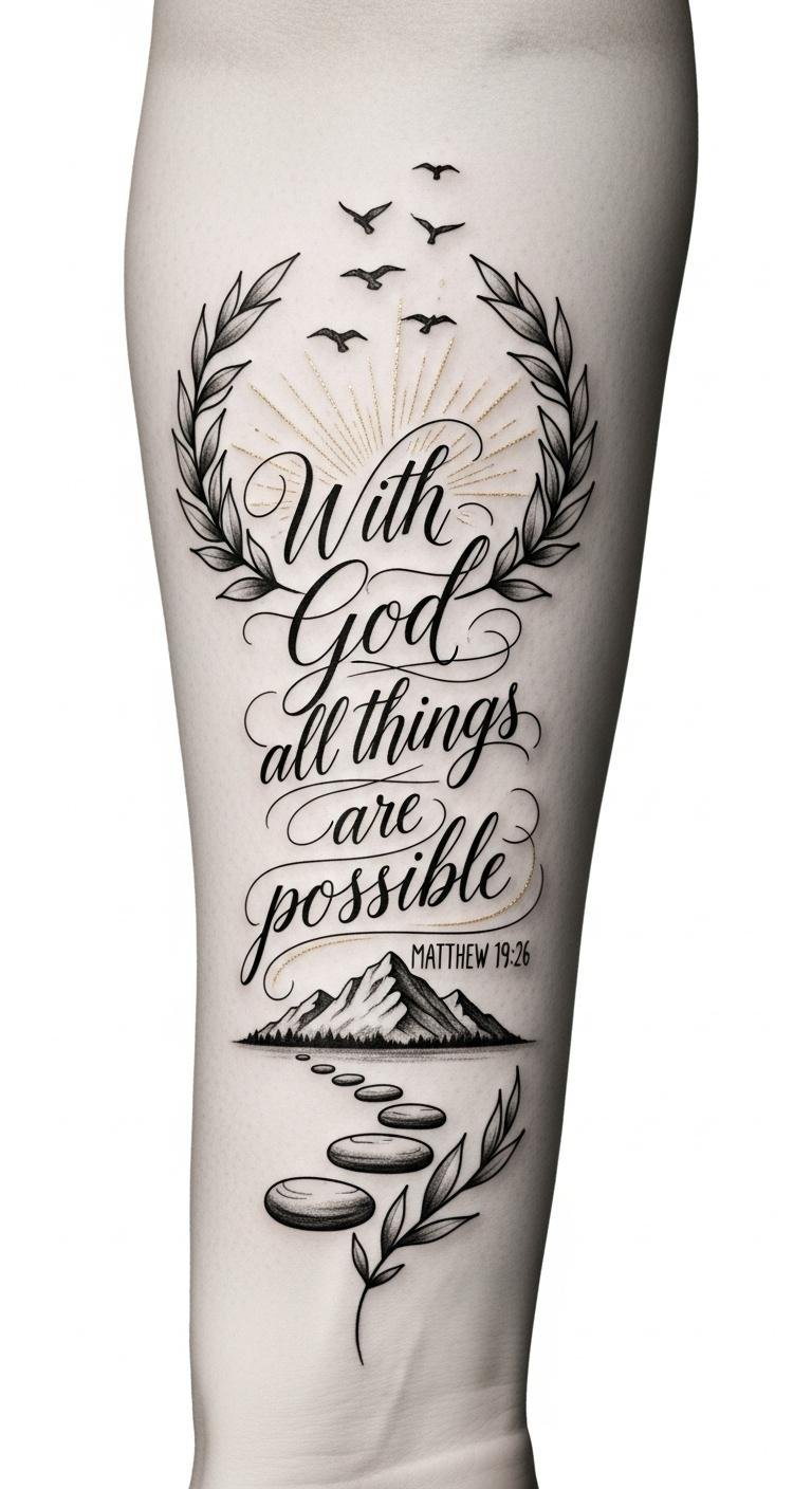 A tattoo design featuring this verse can reflect your personal struggles and spiritual resilience, becoming meaningful ink that inspires empowerment messages in your life.