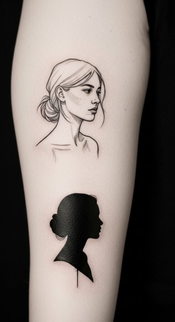 While vibrant neo-traditional designs capture attention with their bold colors, understated sketch and silhouette tattoos offer a more subtle yet equally powerful way to honor the father-child bond. Utilizing delicate sketch techniques, these designs embody emotion and intimacy.