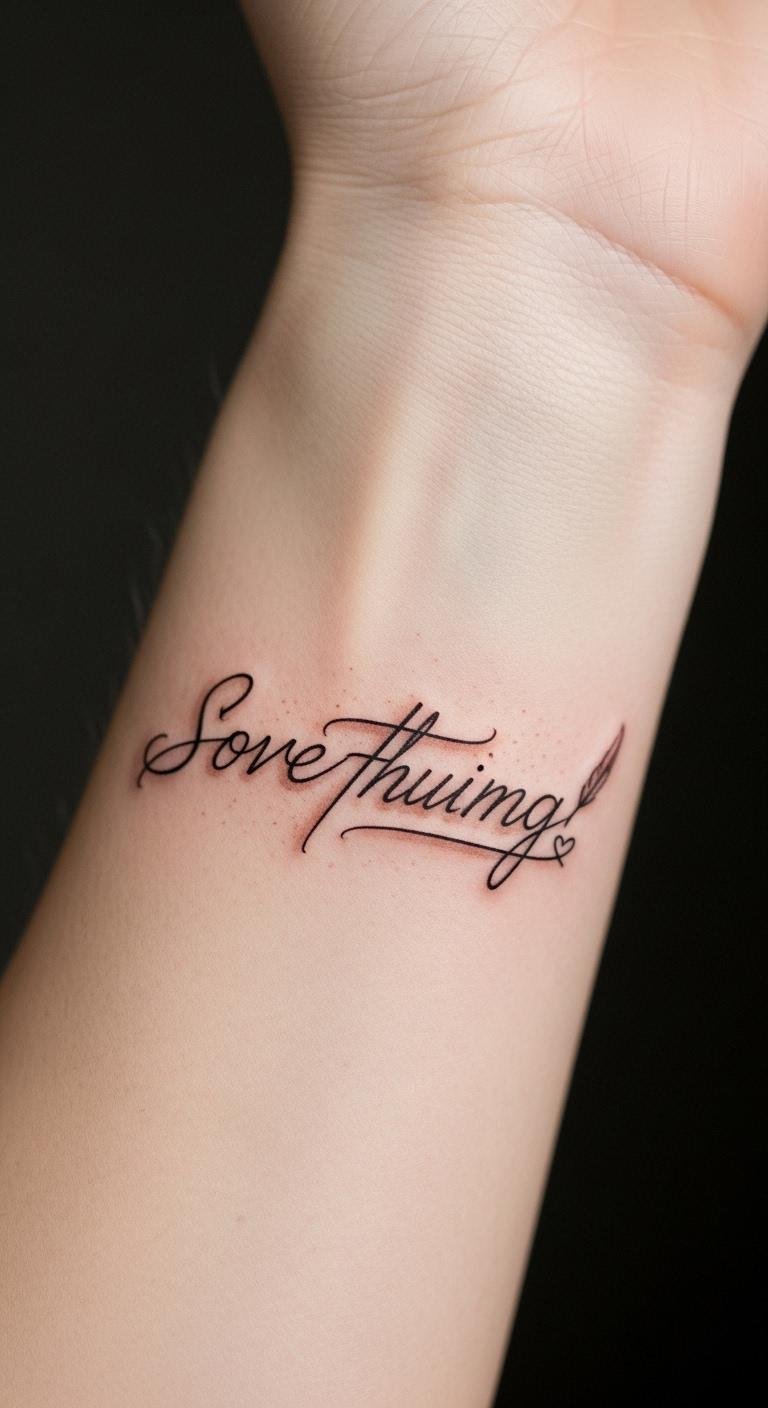 Placed on the inner forearm, the design sits where it can be both private and visible, meant to evoke warmth and grounding when glanced at, with the script personalization anchoring the piece to a single memory or person.