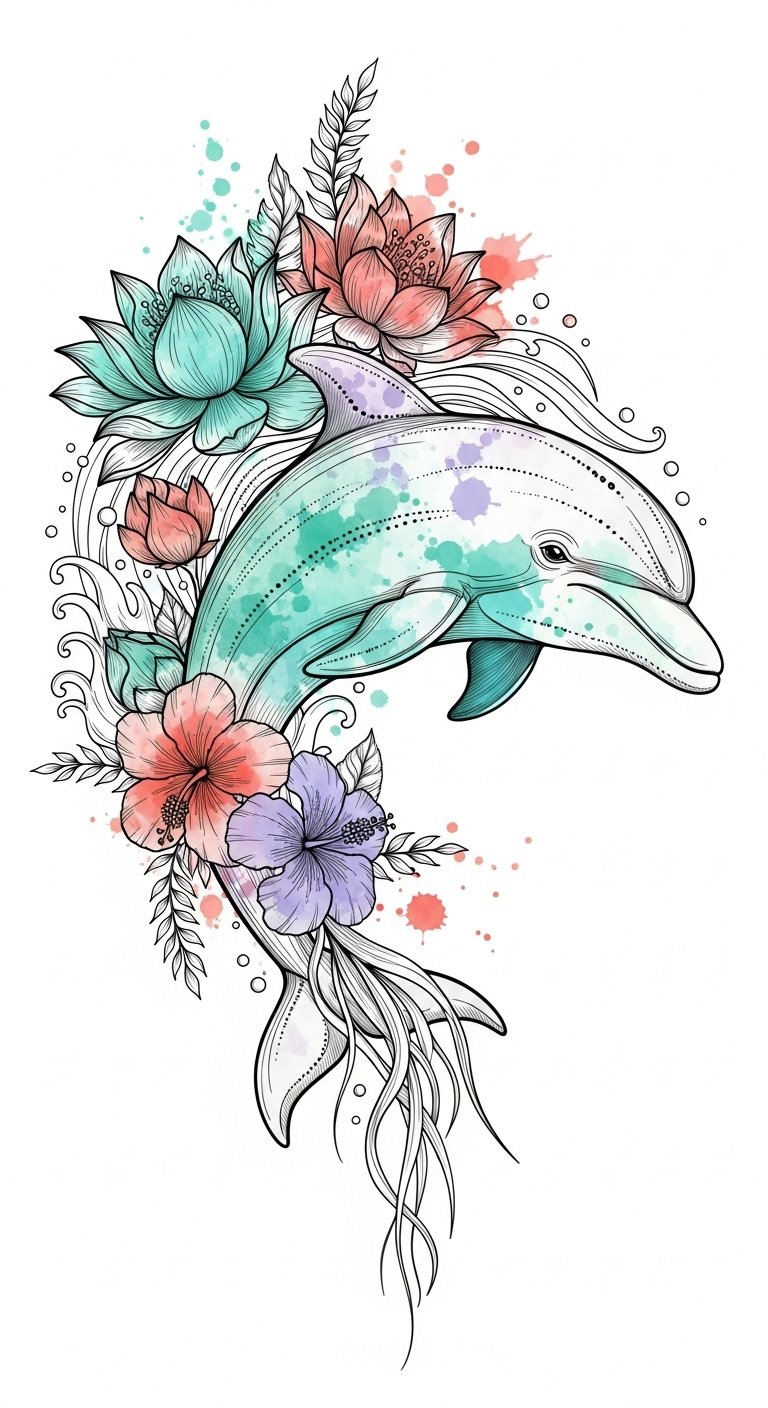 When you combine dolphins with floral elements, you create a vibrant tapestry that symbolizes both joy and natural beauty.