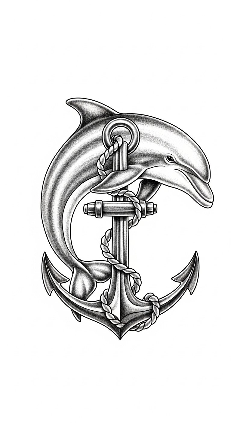 While exploring the beauty of marine life, dolphin and anchor combinations emerge as a striking symbol of adventure and stability. The dolphin symbolizes joy, freedom, and intelligence, while the anchor represents grounding and security. Together, they create a powerful reminder of your journey—embracing the thrill of exploration while remaining anchored in your values. This tattoo design beautifully captures your quest for balance and liberation. Place this design along the inner forearm, upper back between the shoulder blades, or the calf; use flowing linework and subtle shading to convey movement and serenity, with the anchor rendered in slightly heavier lines to emphasize steadiness while the dolphin arcs dynamically around it to evoke uplift and joy.