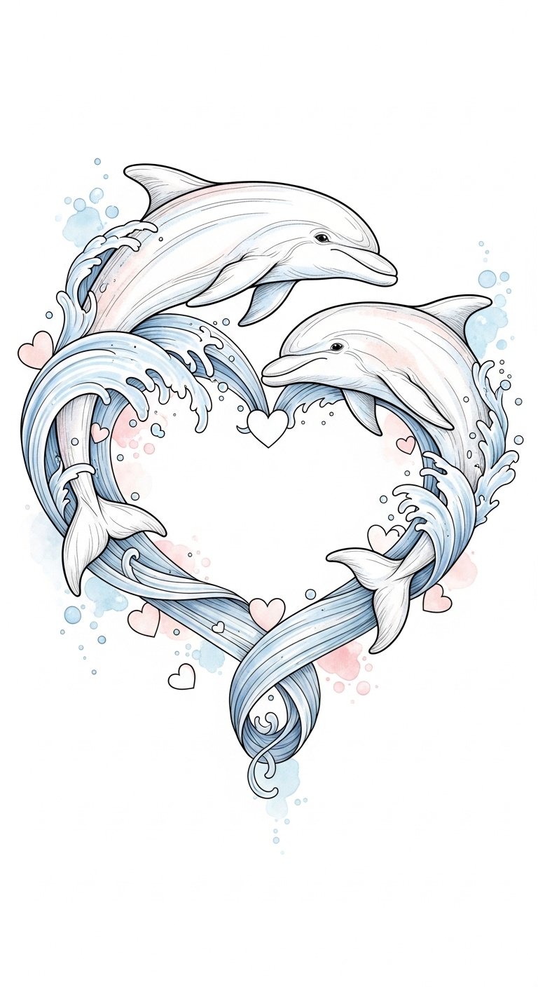 There’s an enchanting charm in combining dolphin imagery with heart symbols, creating a beautiful representation of love and joy.