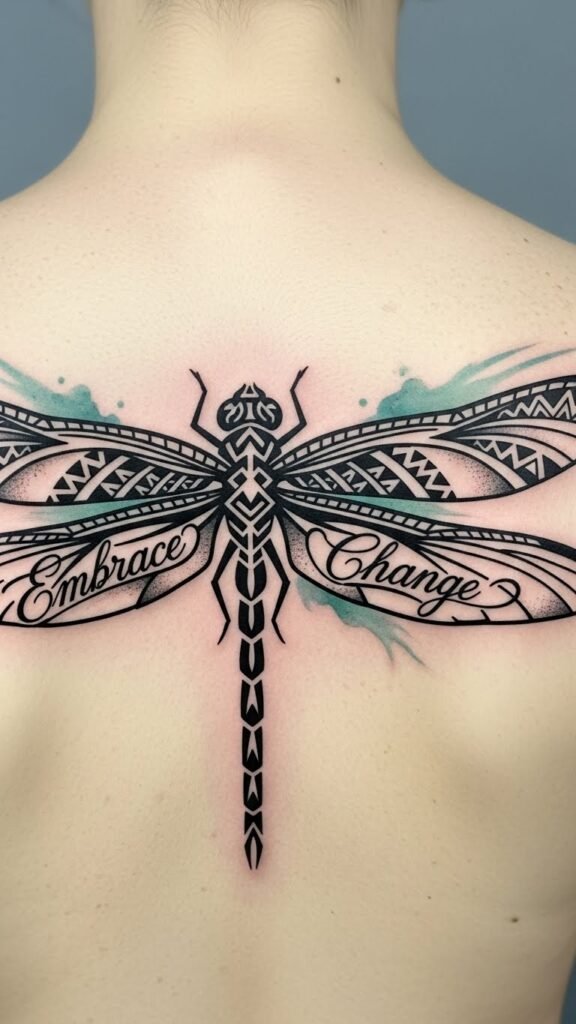 Tribal dragonfly tattoos beautifully capture the spirit of transformation, but combining them with inspiring quotes elevates their meaning even further.