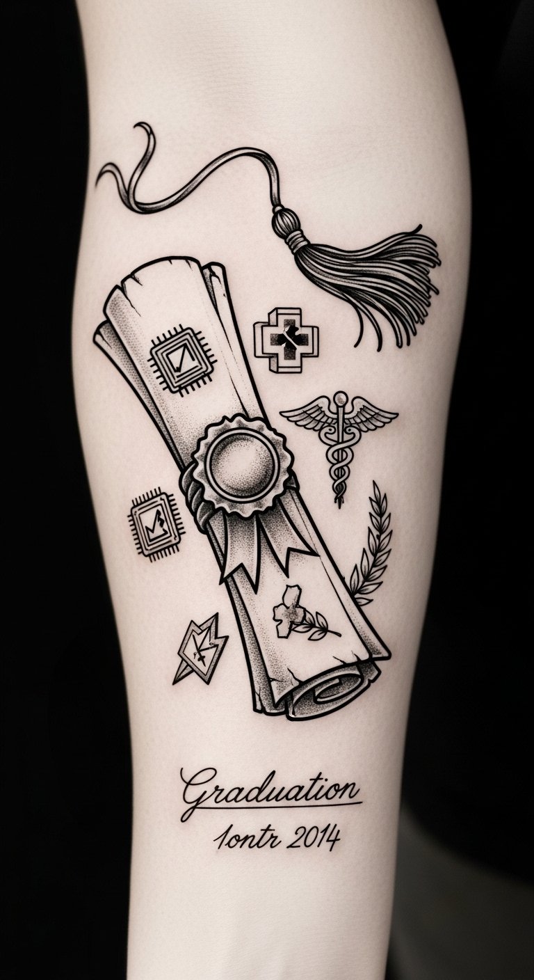 These tattoos celebrate your academic achievements, reminding you of the path you’ve traveled.