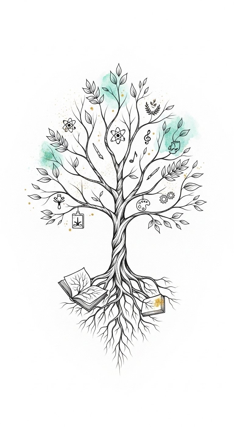 The Tree of Knowledge gently unfurls its branches, each one representing the vast fields of learning you’ve explored.