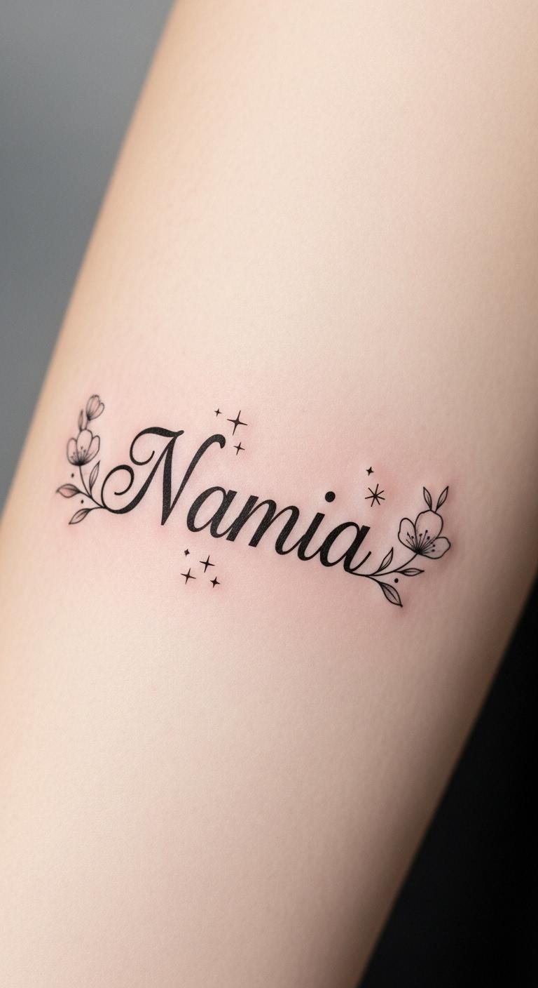 Ideal placement is along the forearm for visibility and daily connection or the ribcage for a more private, close-to-heart tribute, with scale and curvature adjusted to body contours so the name flows naturally with movement.