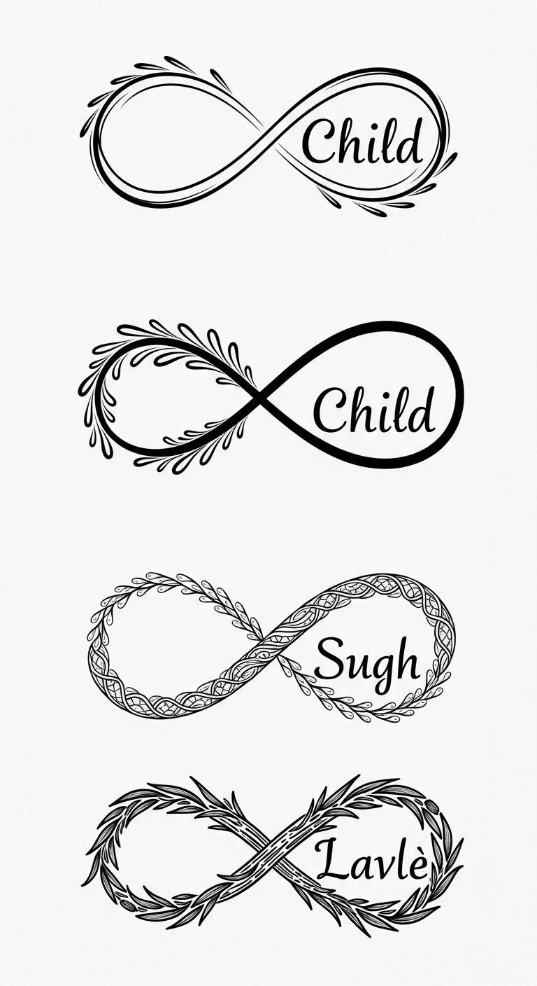 When placed along the inner forearm, over the heart, or behind the ear, this design becomes a private emblem of enduring connection; delicate script weaves seamlessly into the infinity loop, while optional flourishes—tiny stars, a small heart, or minimalist botanical accents—add personal meaning without overpowering the core motif.