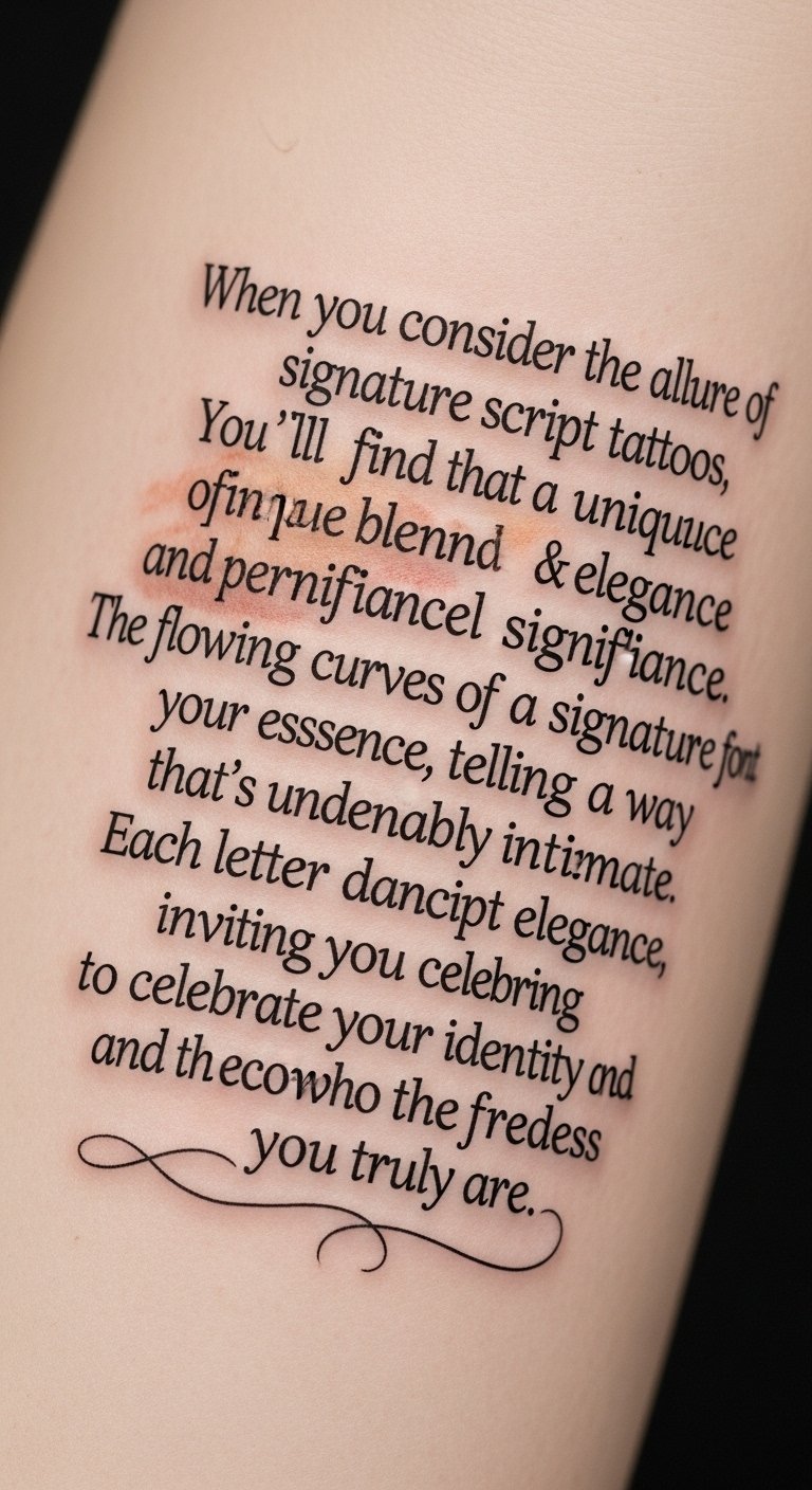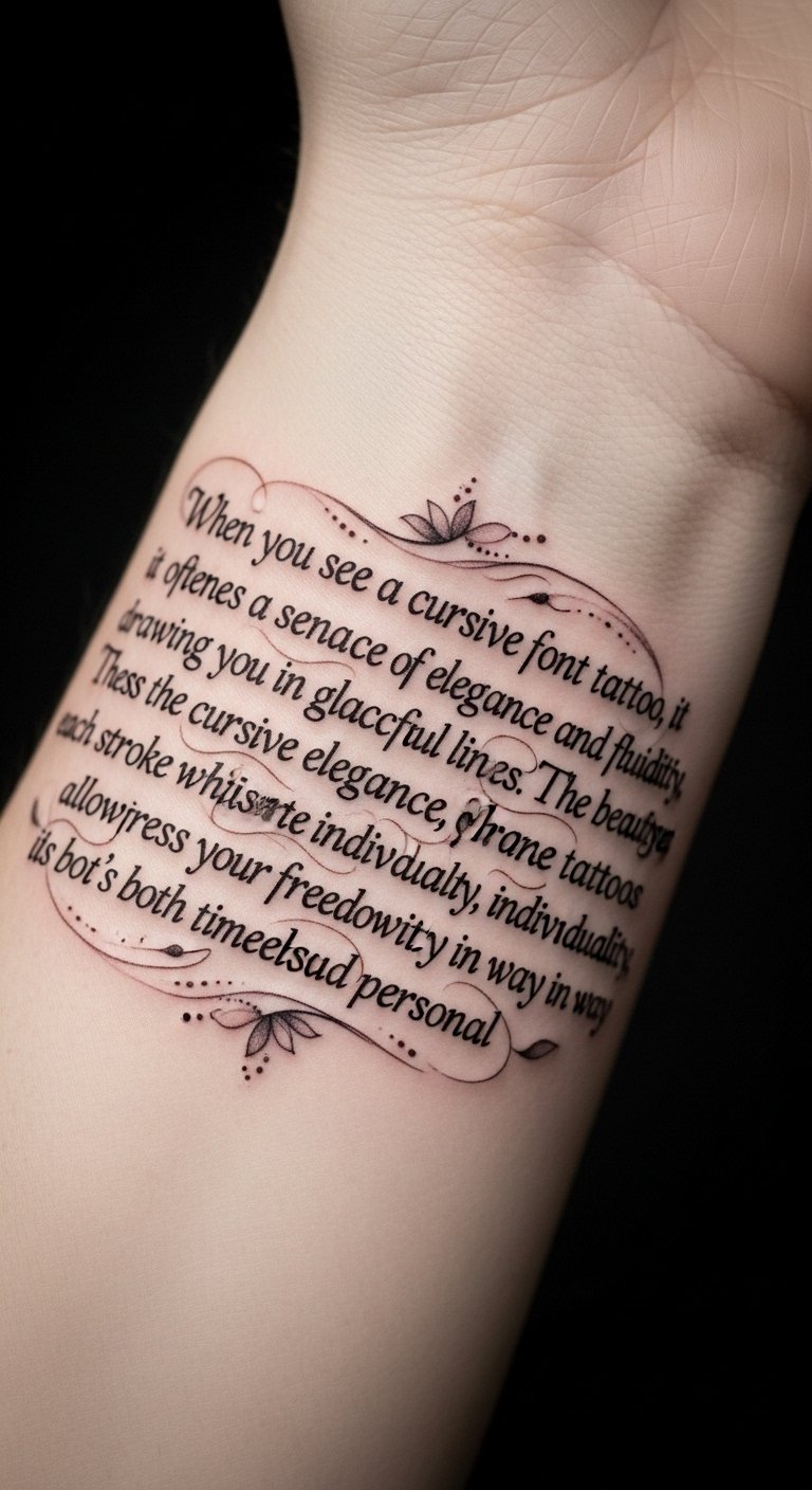 Cursive tattoos often reflect a moment in time, capturing feelings and thoughts that resonate deeply. As you experience personal evolution, your tattoo choices shift, embodying new values and insights.