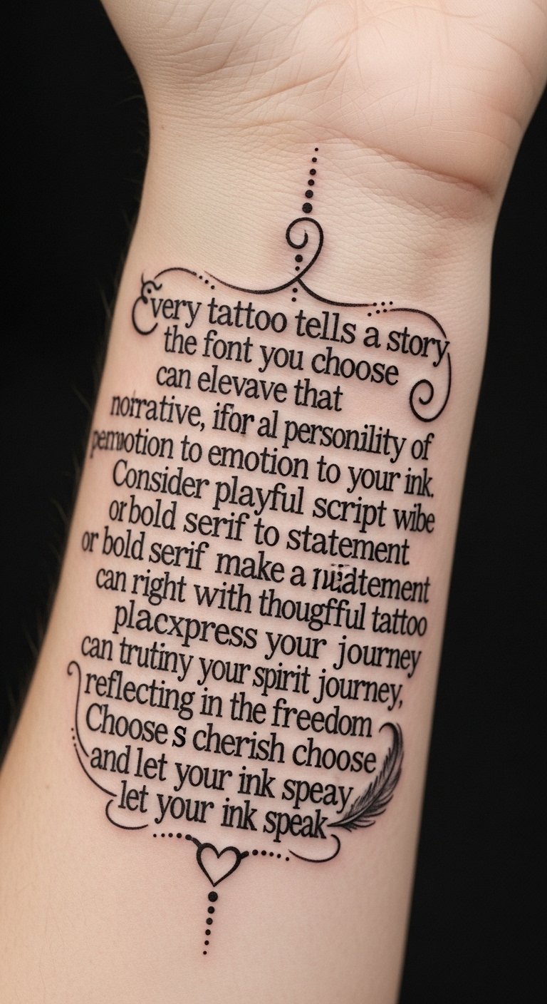 When you choose a scriptural font for your tattoo, you’re selecting more than just letters; you’re embodying a personal narrative that resonates with your soul. Each style of scriptural typography carries its own emotional resonance, from elegant cursive to bold serif.