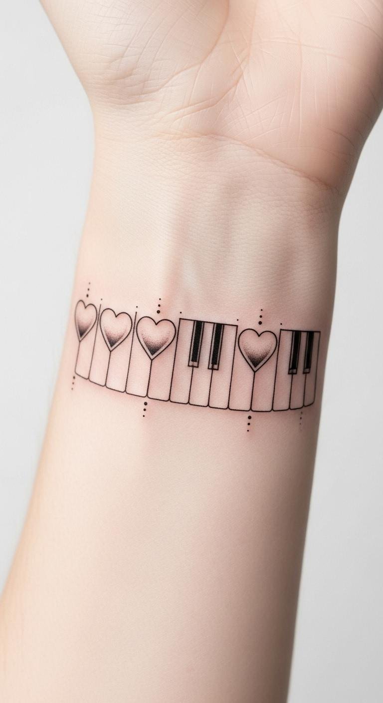 Heart-Shaped Piano Keys Tattoo