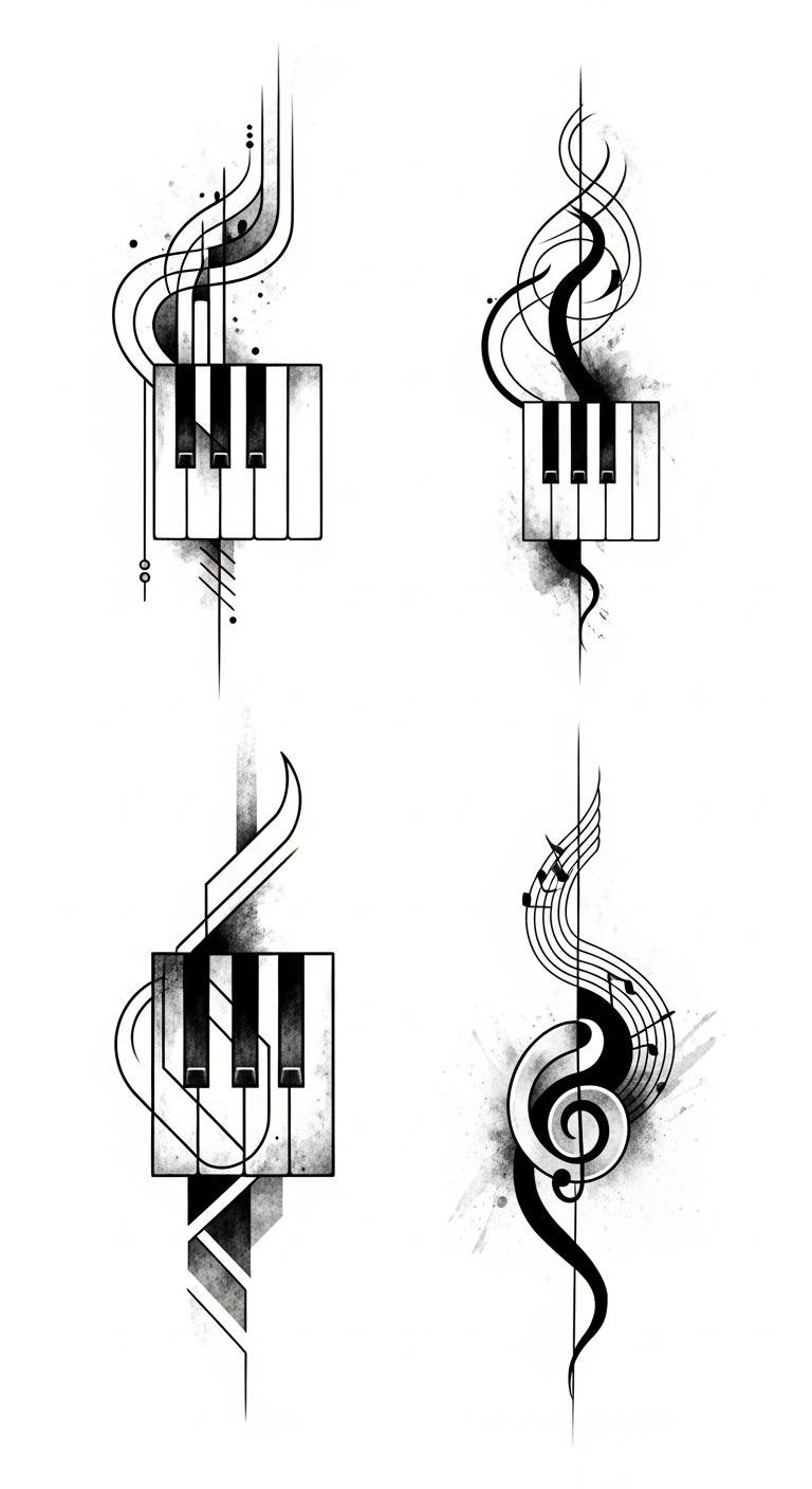 Emotionally they range from nostalgic and serene to bold and defiant depending on line weight and negative space. Ideal placements include the forearm or ribcage for elongated key designs, the shoulder blade for a sweeping staff with notes, or the wrist for a small minimalist motif—each location influencing visibility and intimacy of the piece.