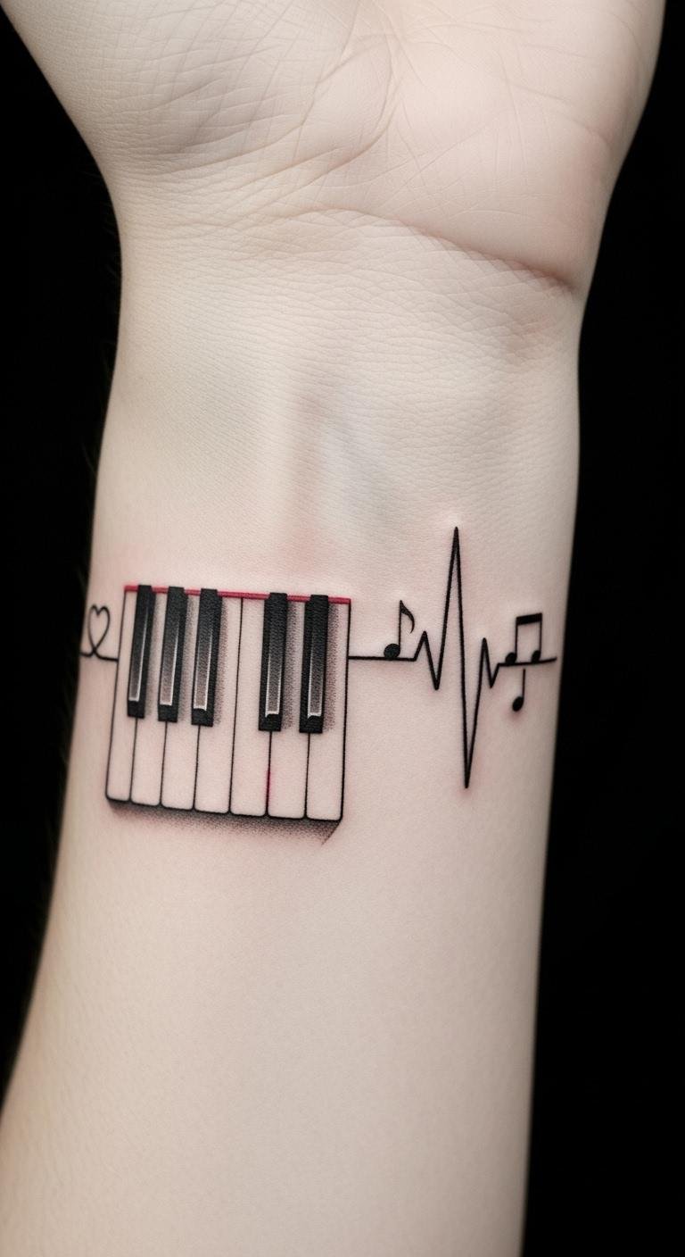 There’s something truly enchanting about a design that intertwines piano keys with a heartbeat line, creating a visual melody that resonates deeply.