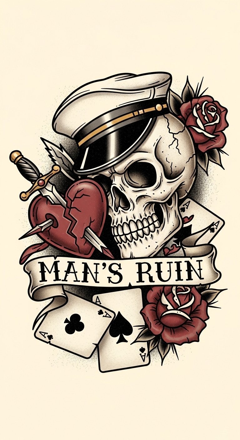 While you mightn’t have a penchant for conventionality, the “Man’s Ruin” tattoo idea captures the essence of rebellion and defiance against societal norms.