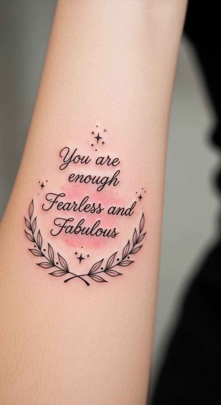 Imagine inked empowering affirmations that resonate with your spirit. Phrases like “You are enough” or “Fearless and fabulous” act as daily confidence boosters, reminding you of your worth and encouraging you to embrace your unique journey with unyielding passion.