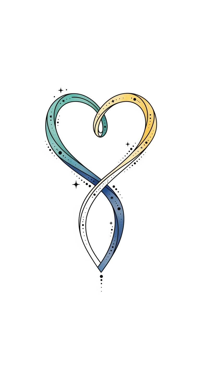 The design’s intertwining loop and heart symbolize continuity, love, and neurodiversity, with colors chosen to feel uplifting and inclusive; its fine-line execution keeps it intimate and wearable, evoking calm pride and suitable for visible personal placements that invite gentle conversation.