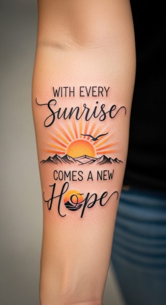 Have you ever thought about how a simple phrase could change your perspective? Quote tattoos can serve as powerful reminders of your journey and aspirations. Each design tells a story of resilience and self-acceptance, urging you to embrace life’s challenges. Imagine feeling empowered by words etched into your skin, guiding you daily. Which quote resonates with you the most? Let’s explore a collection that might just ignite your passion for life. This forearm placement keeps the message visible for daily affirmation, the ribbon arrangement follows the natural contours of the arm to suggest continuity and forward movement, the watercolor accents highlight emotional peaks while remaining understated, and the heartbeat line ties the words to the personal, visceral experience of living—symbolizing endurance, hope, and the steady pulse of perseverance.