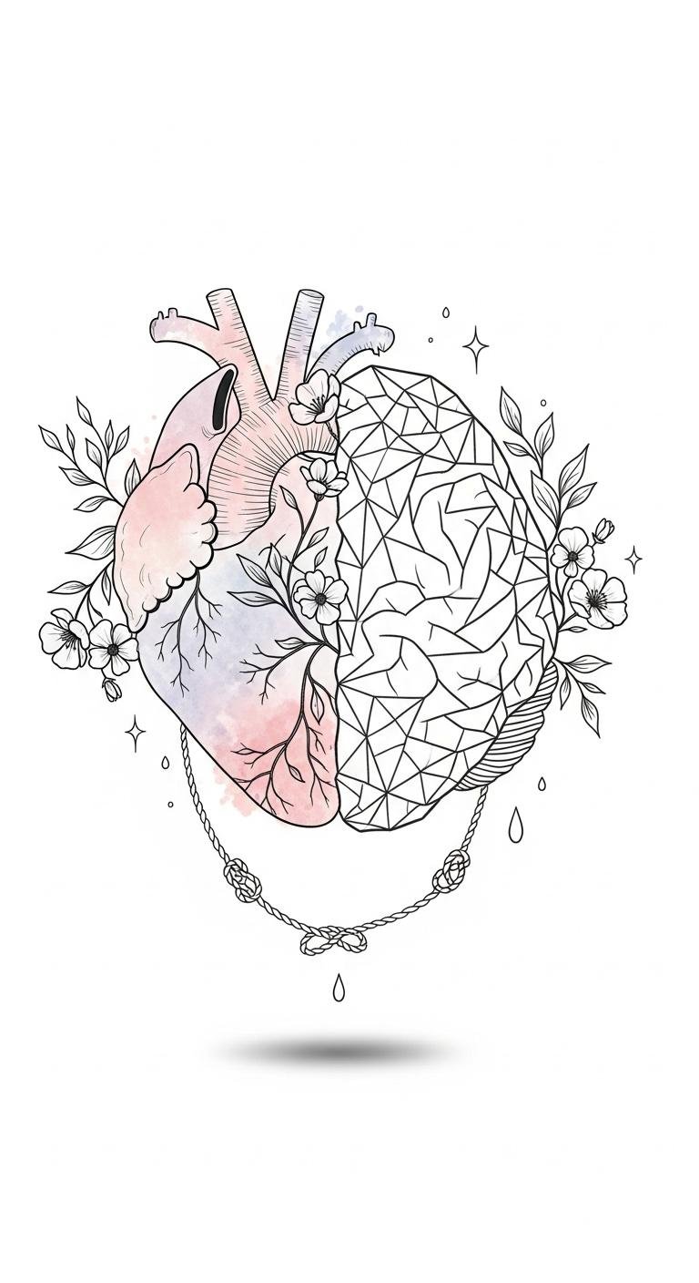 Watercolor bleeds and uneven lines emphasize acceptance of flaws, while stippling adds texture and depth. Ideal placement: inner forearm, ribcage, or shoulder blade—spots that allow the piece to feel intimate and visible when chosen, inviting personal reflection and quiet confidence.