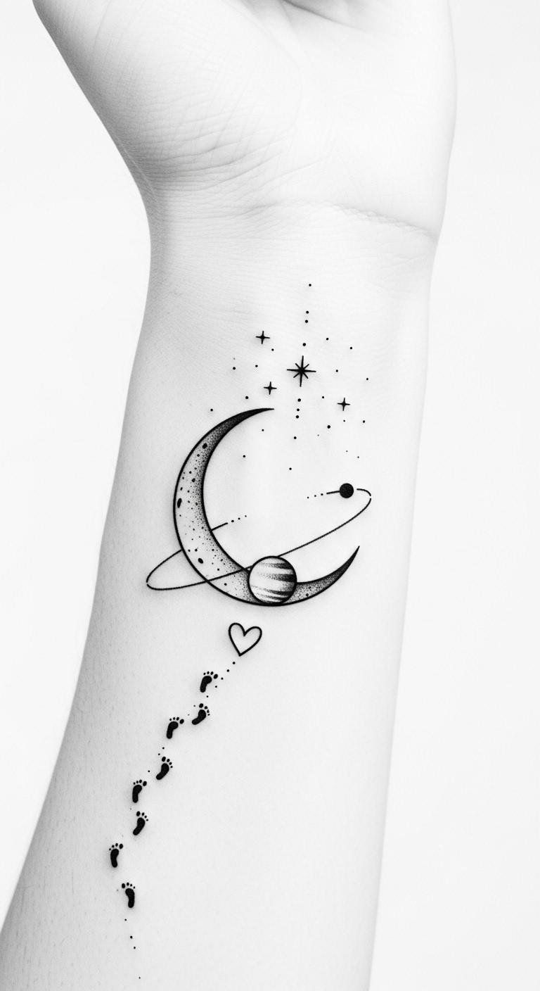 Each time you glance at your tattoo, you’ll feel that love radiating, inspiring you to soar beyond the stars.