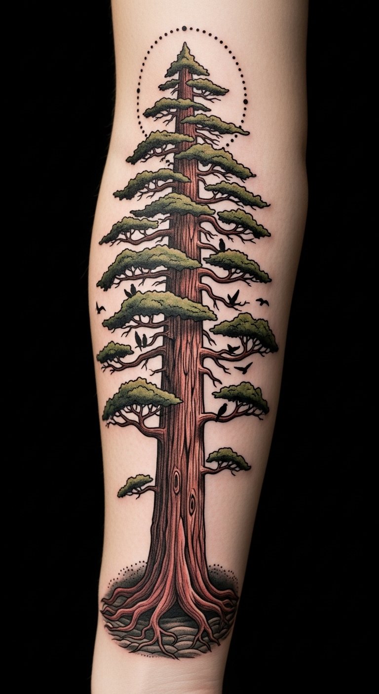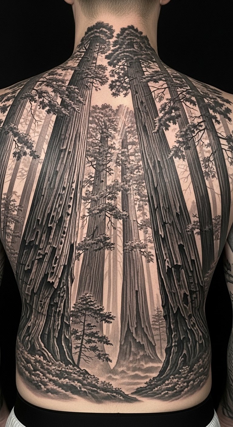 Towering Heights: Vertical Compositions in Redwood Tattoos
