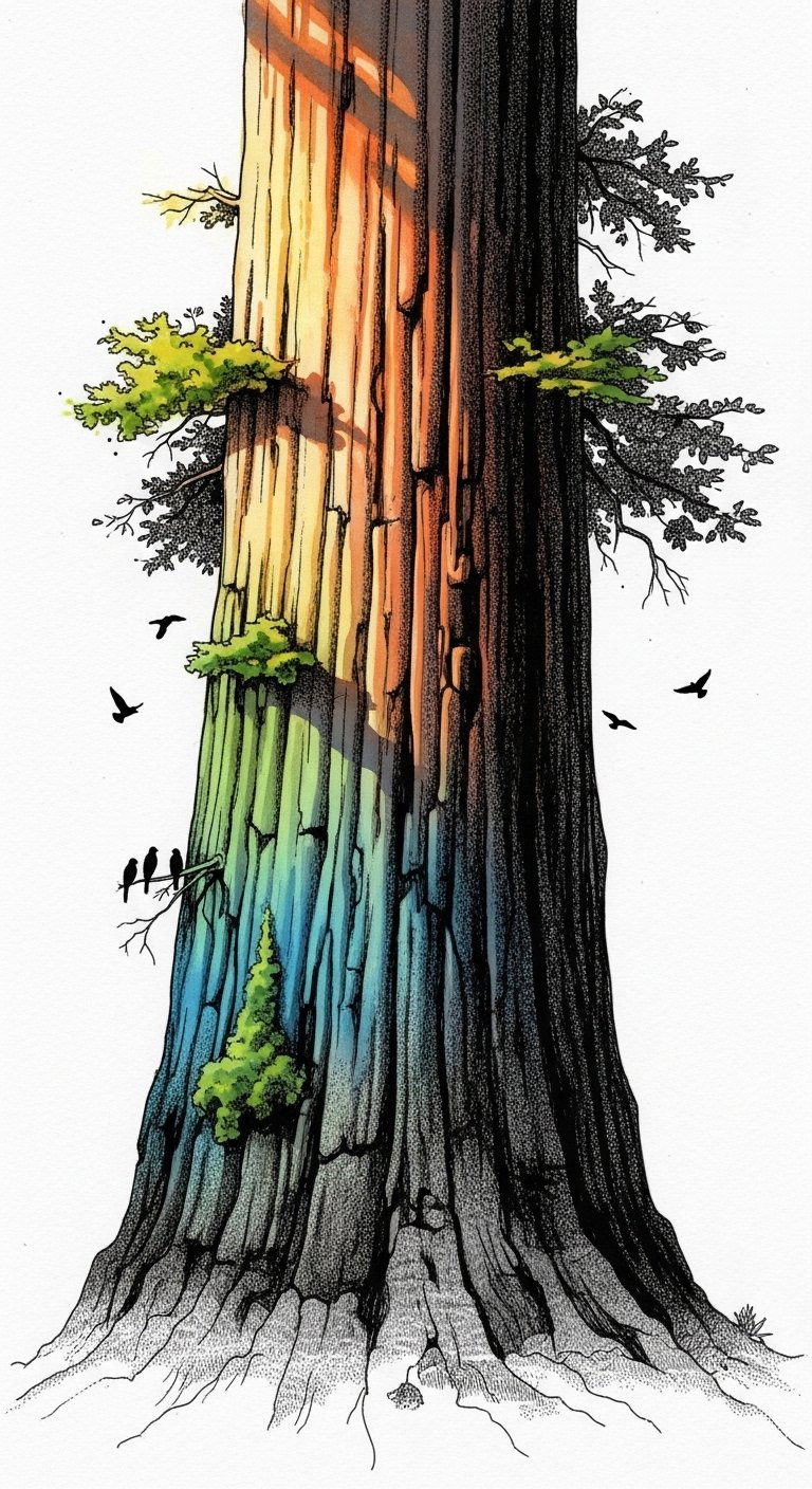 Imagine the majestic redwood tree standing tall, its bark rough yet beautiful, a tribute to resilience.