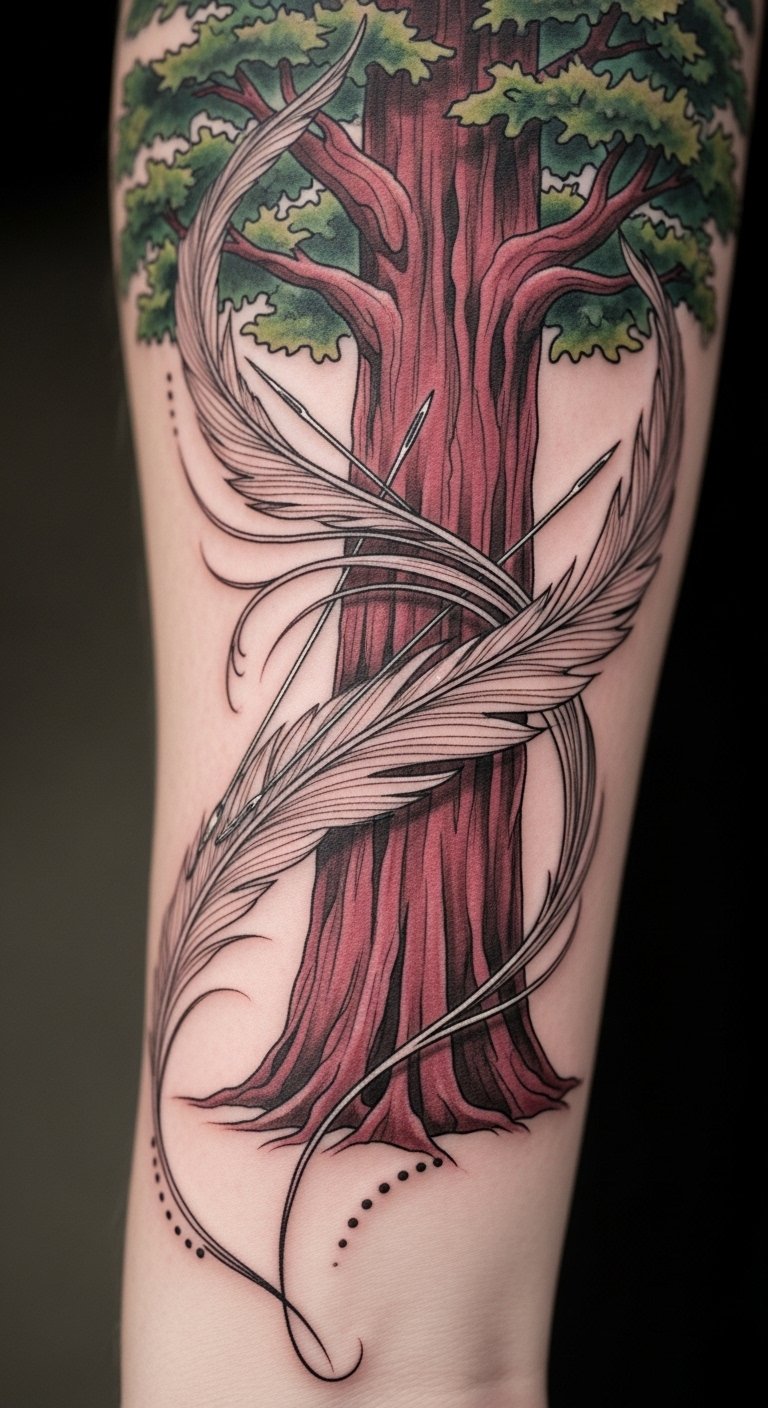 These intricate feathery textures create stunning needle patterns that dance across your skin, evoking a sense of freedom and connection to nature. The artistry behind these tattoos captures the essence of the redwood, making each piece a unique expression of your love for the wild.