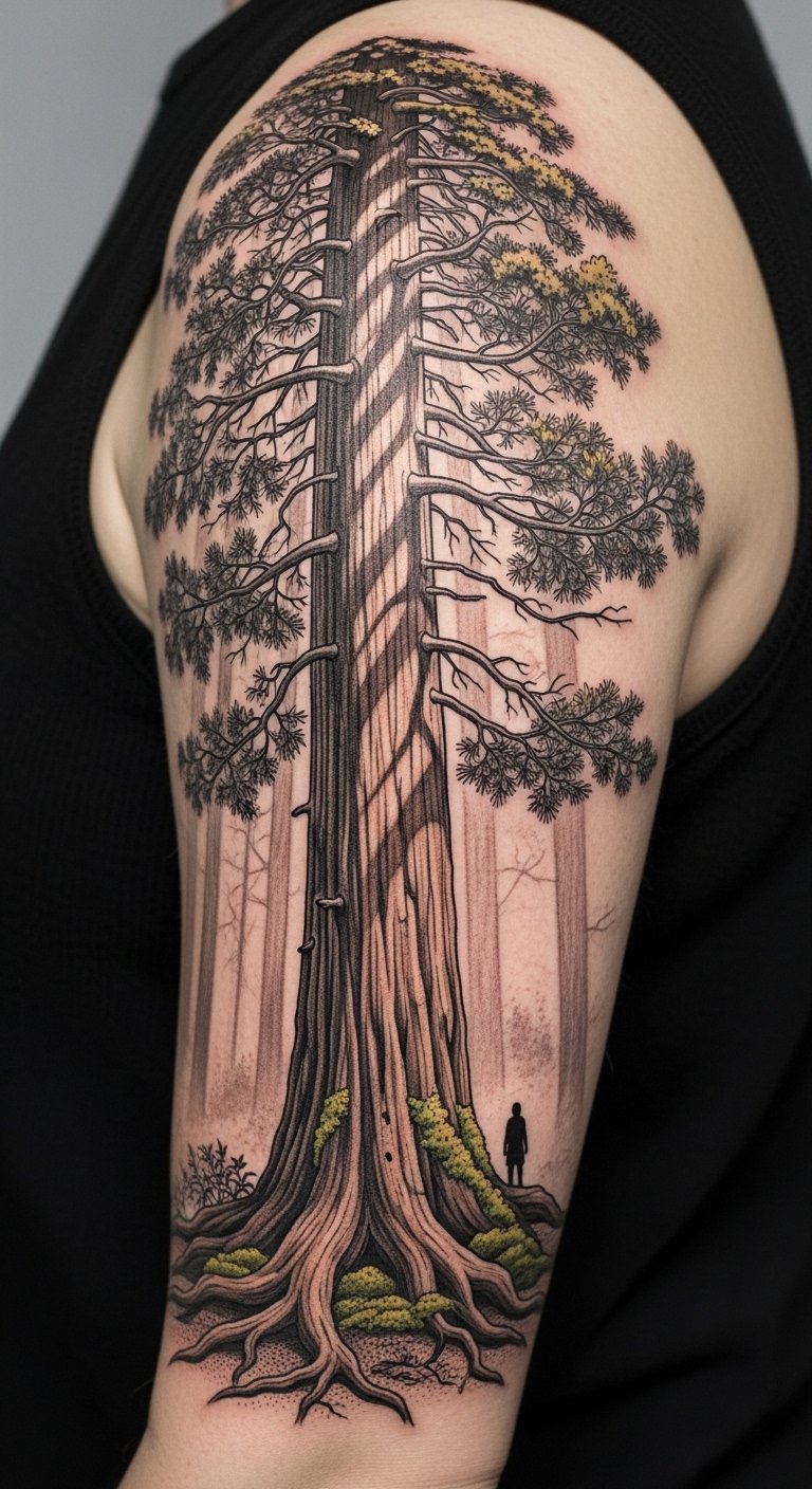 Tattoos inspired by redwoods embody a sense of stability that resonates deeply with those who wear them. These designs, with their ancient roots, ground you in the beauty of nature. The earthy symbolism reflects resilience and strength, reminding you to stay true to your path.