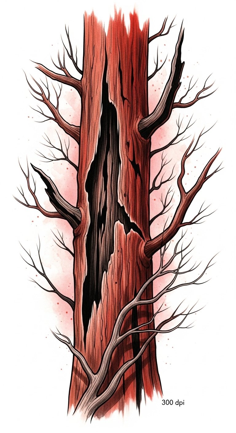 Let your tattoo tell a story of survival and beauty, celebrating the freedom found in the intricate details of these majestic giants. This design symbolizes endurance and renewal: burn scars represent past trauma transformed into strength, while the varied branches show individuality and growth.