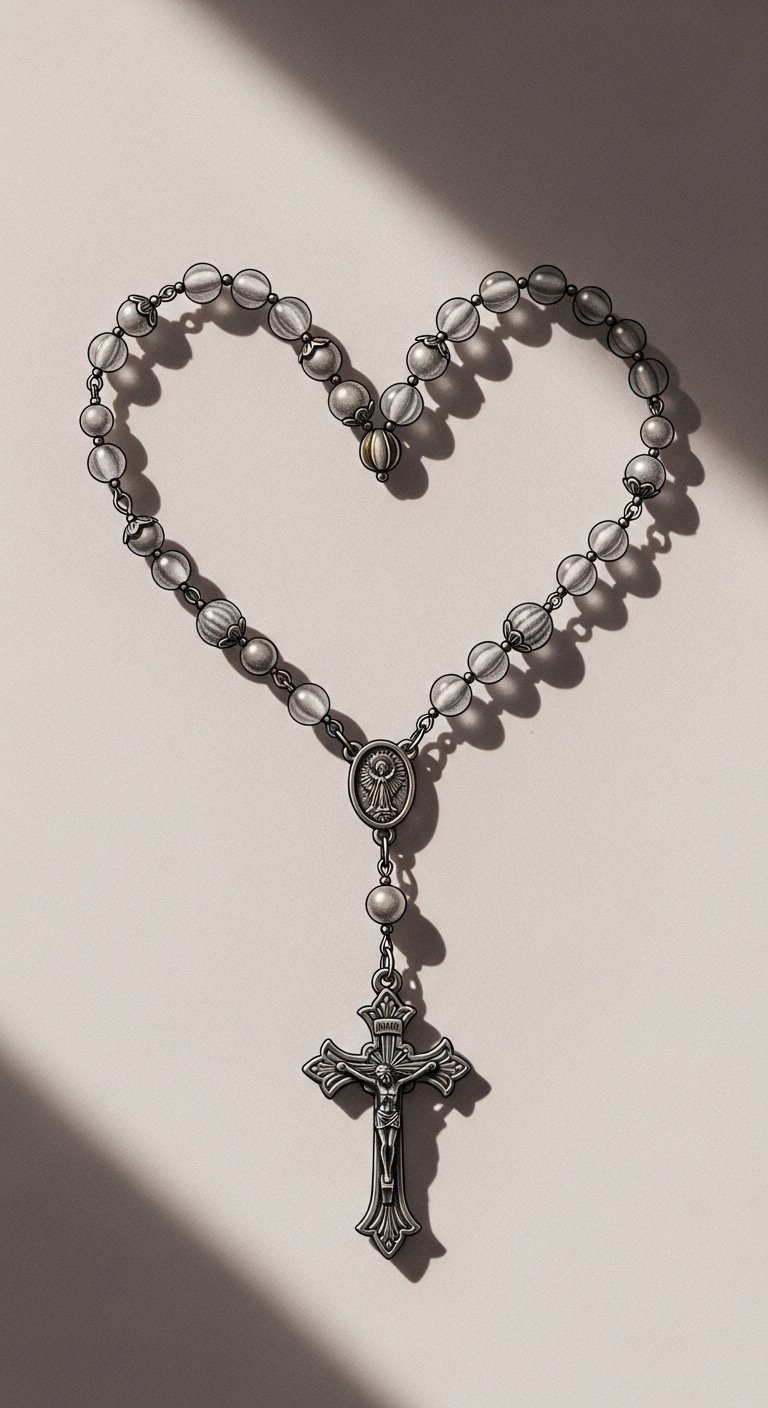 The beauty of rosary beads can take on new meaning when they’re arranged in a heart shape, symbolizing love and devotion.