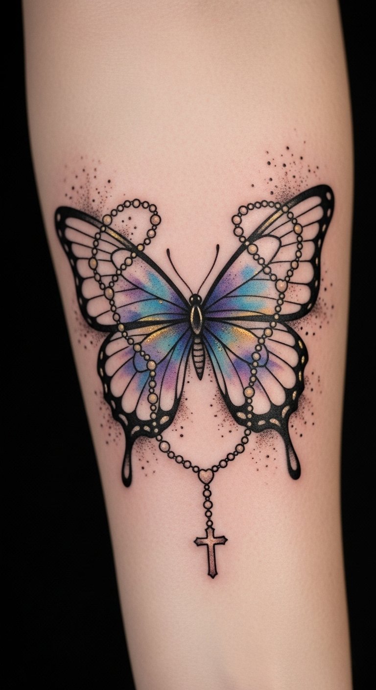 When you think about a rosary tattoo infused with the elegance of a butterfly, it symbolizes not just faith but also profound transformation.