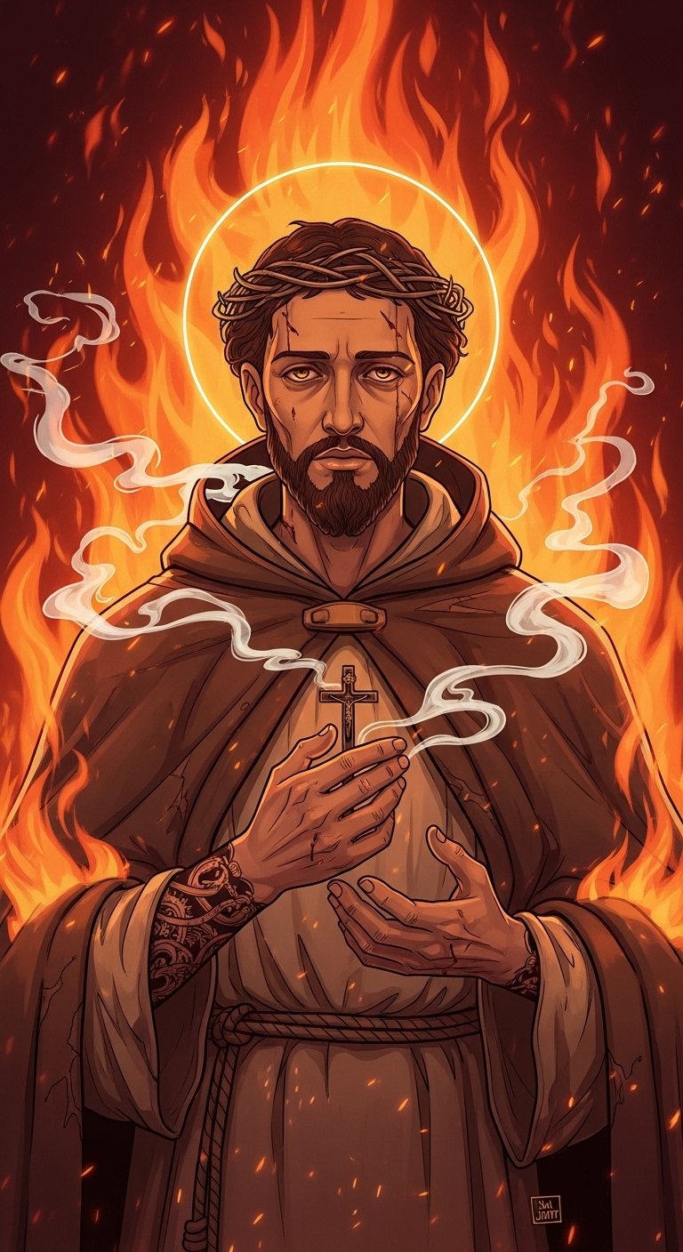 San Judas With Flames