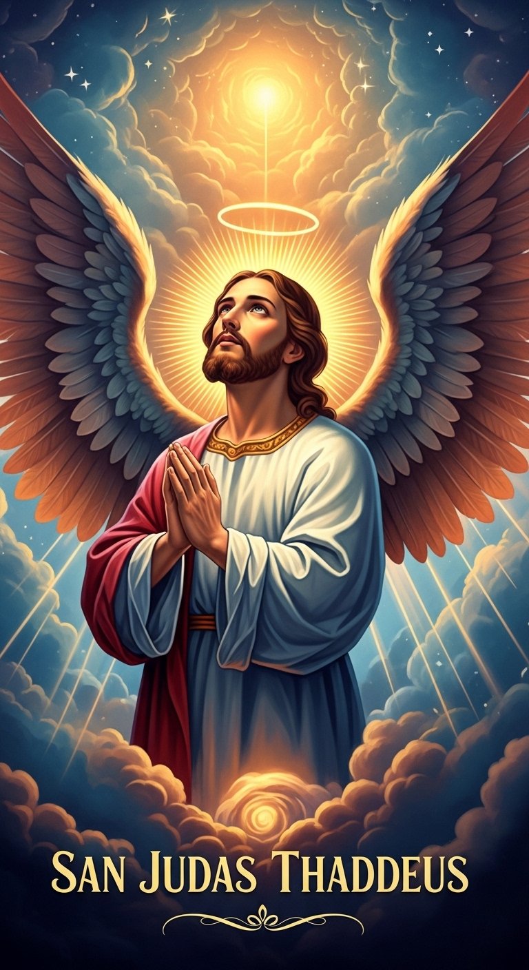 San Judas With Angelic Imagery