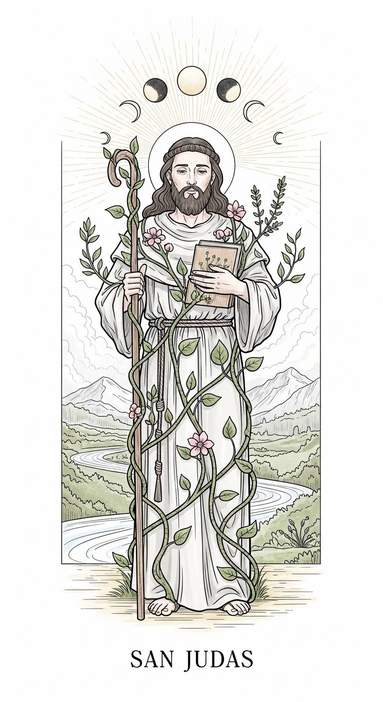 San Judas With Nature Elements