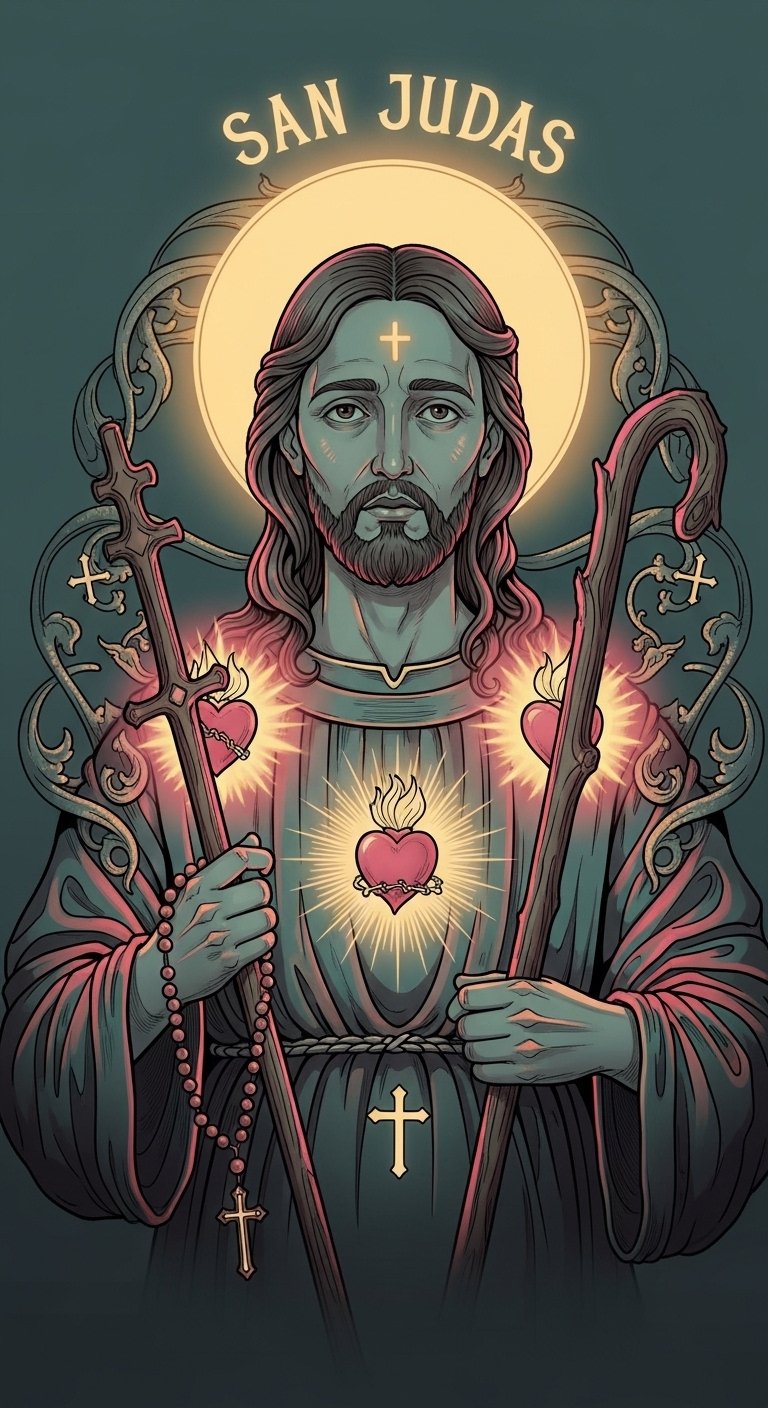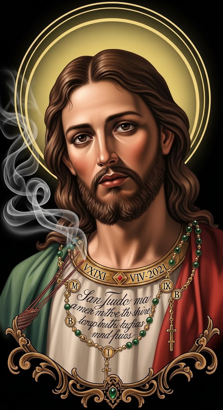 San Judas With Spiritual Symbols
