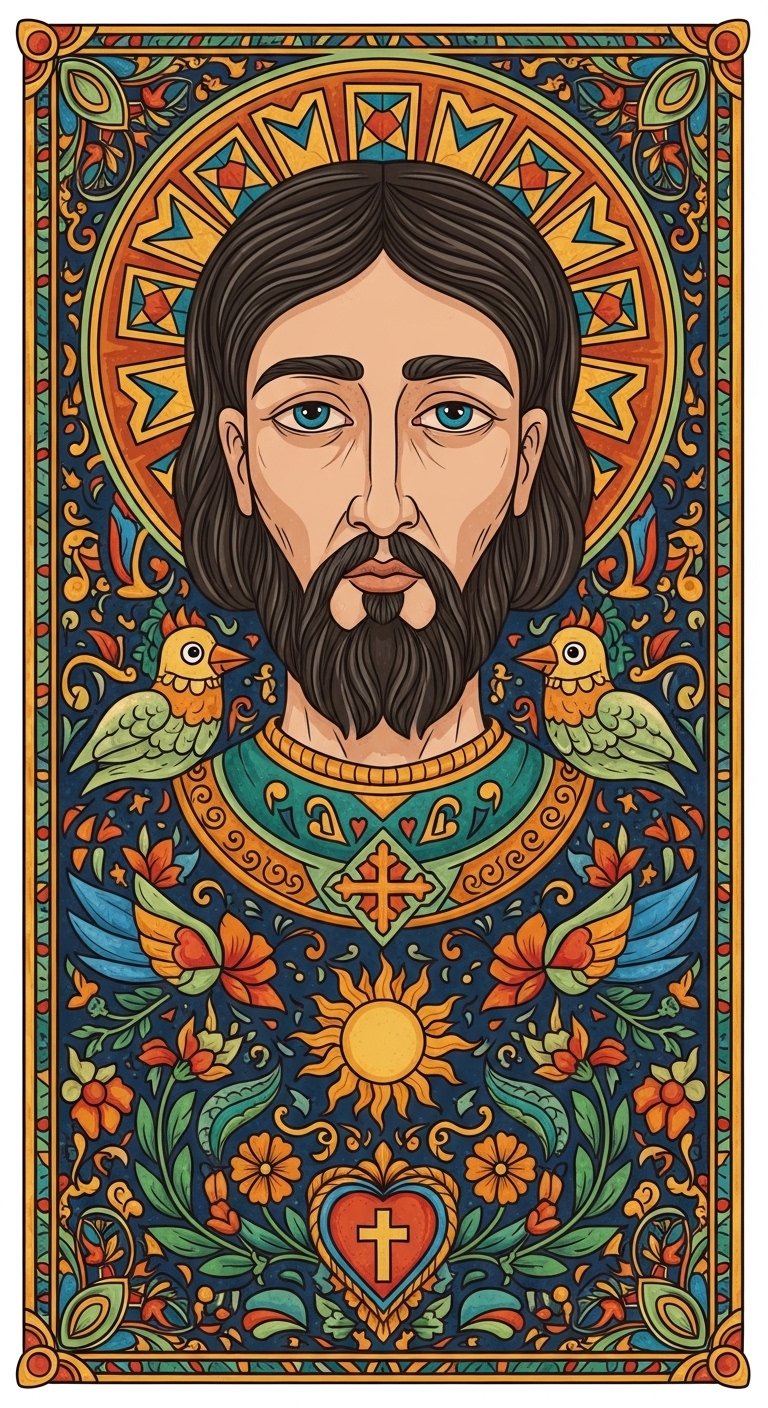 San Judas in Traditional Folk Art Style