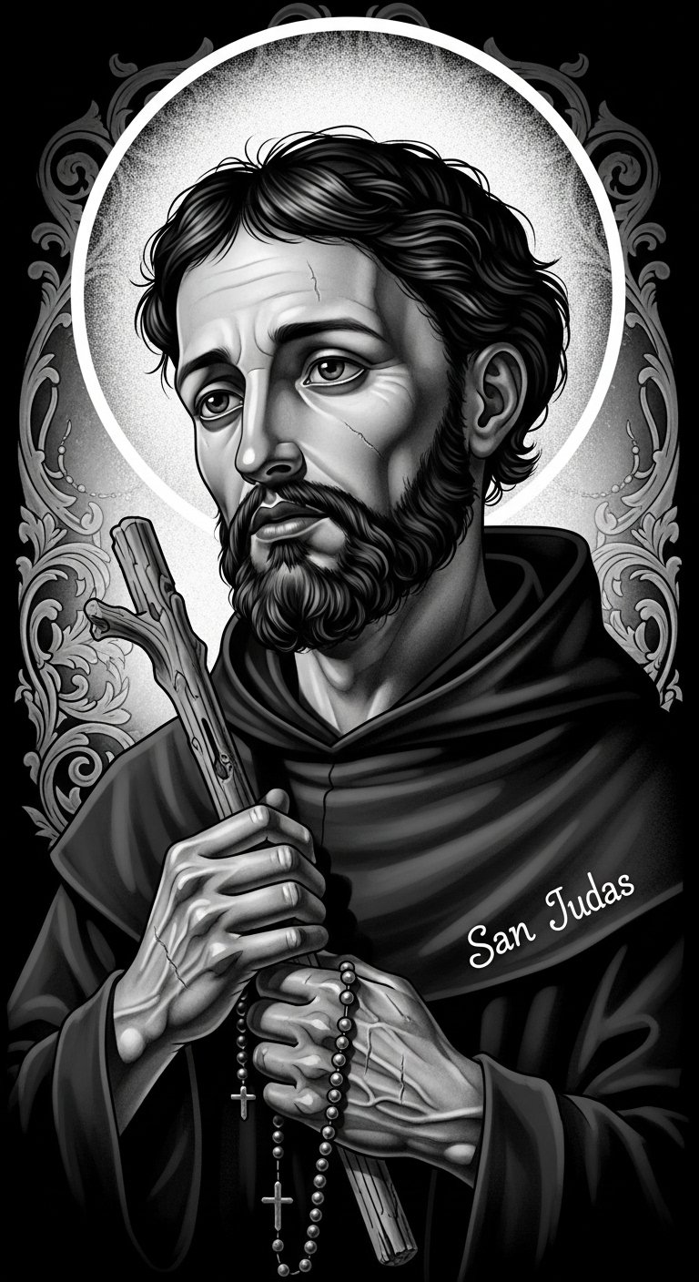 This design captures the essence of san judas symbolism, reminding you of hope and guidance during challenging times.