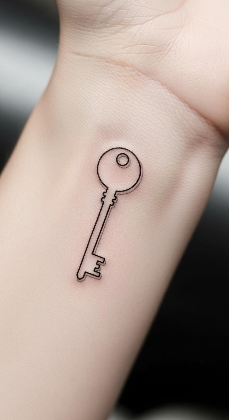 Accessing the essence of personal freedom, the minimalist key tattoo serves as a powerful symbol of opportunity and potential.