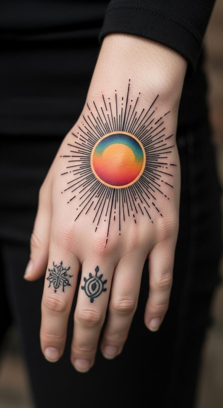 Choosing a small tattoo like a tiny sunburst on your wrist can serve as a radiant reminder of energy and positivity in your life.