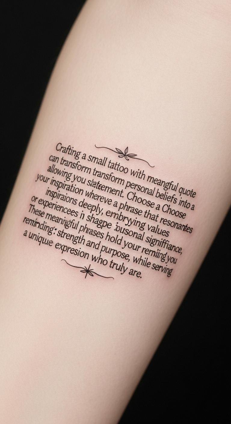 Crafting a small tattoo with a scripted meaningful quote can transform personal beliefs into a visual statement, allowing you to carry your inspiration wherever you go.