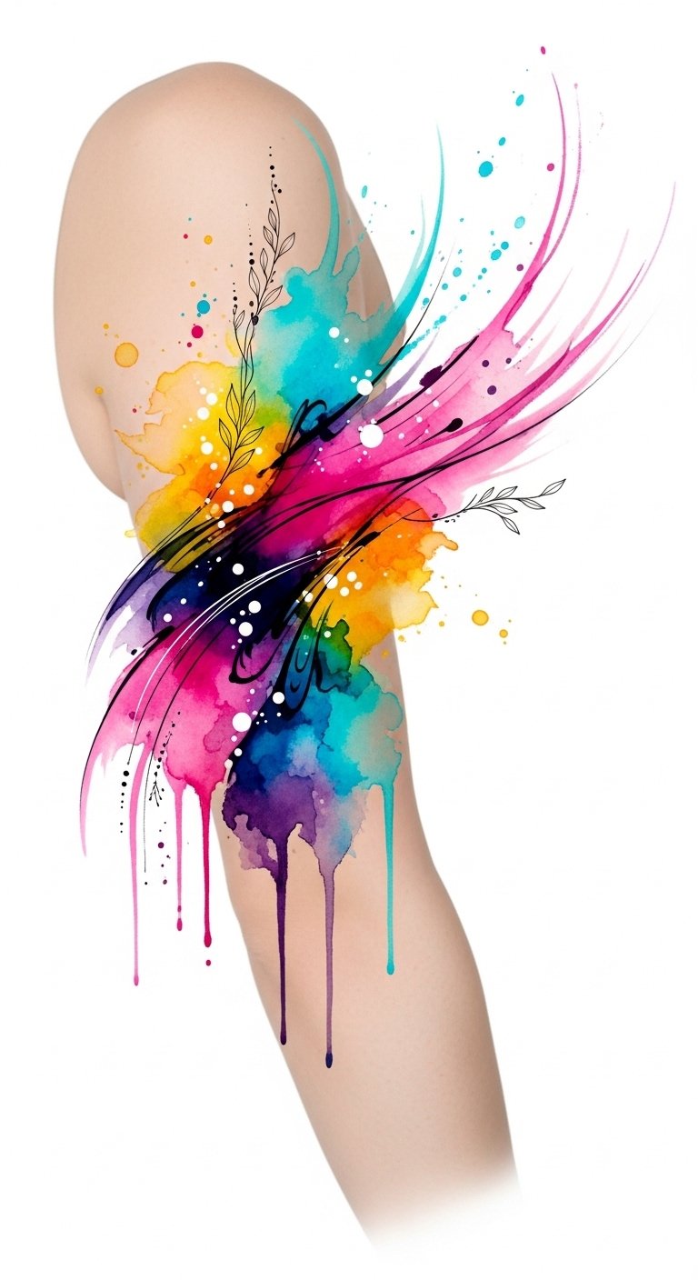 Ideal placements are the forearm for visibility and movement, the shoulder blade for a larger canvas that flows with the shoulder’s contours, or the ribcage for an intimate, private statement; fine-line botanical accents guide the eye while watercolor fields provide expressive color and soft transitions.