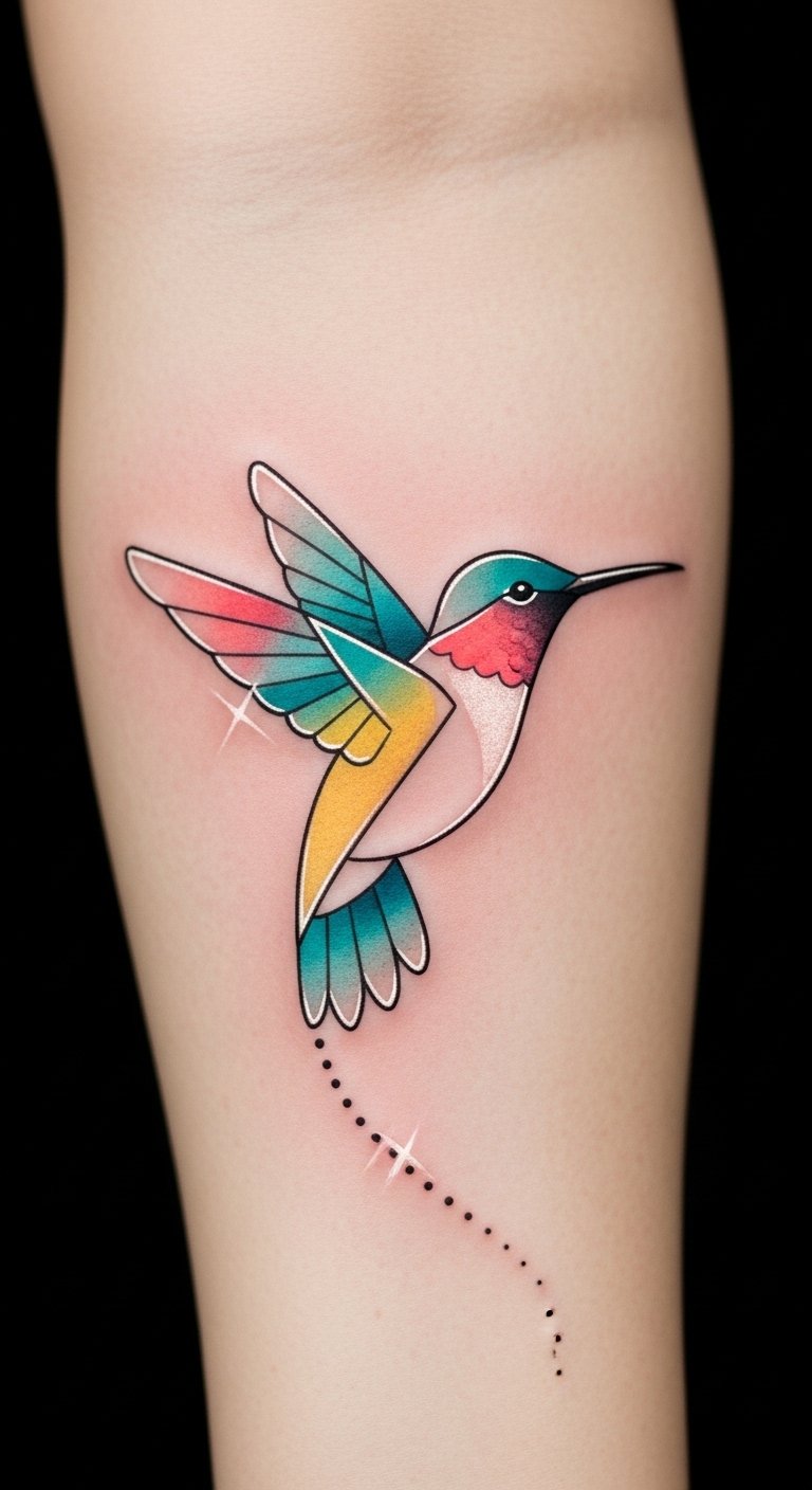 This hummingbird symbolizes freedom, individuality, and the joyful burst of life the original text evokes; its vibrant but restrained palette and simple silhouette capture the balance of vibrancy and minimalism described.