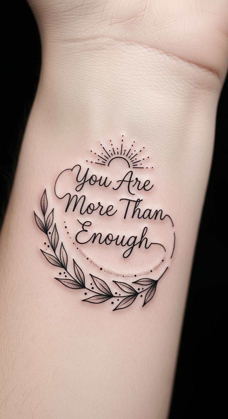 Embrace your self-worth journey with a tattoo that serves as a personal affirmation, like the phrase “You Are More Than Enough.” Each glance at this powerful reminder reinforces your strength, encouraging you to celebrate your uniqueness and embrace your journey toward self-love and freedom.