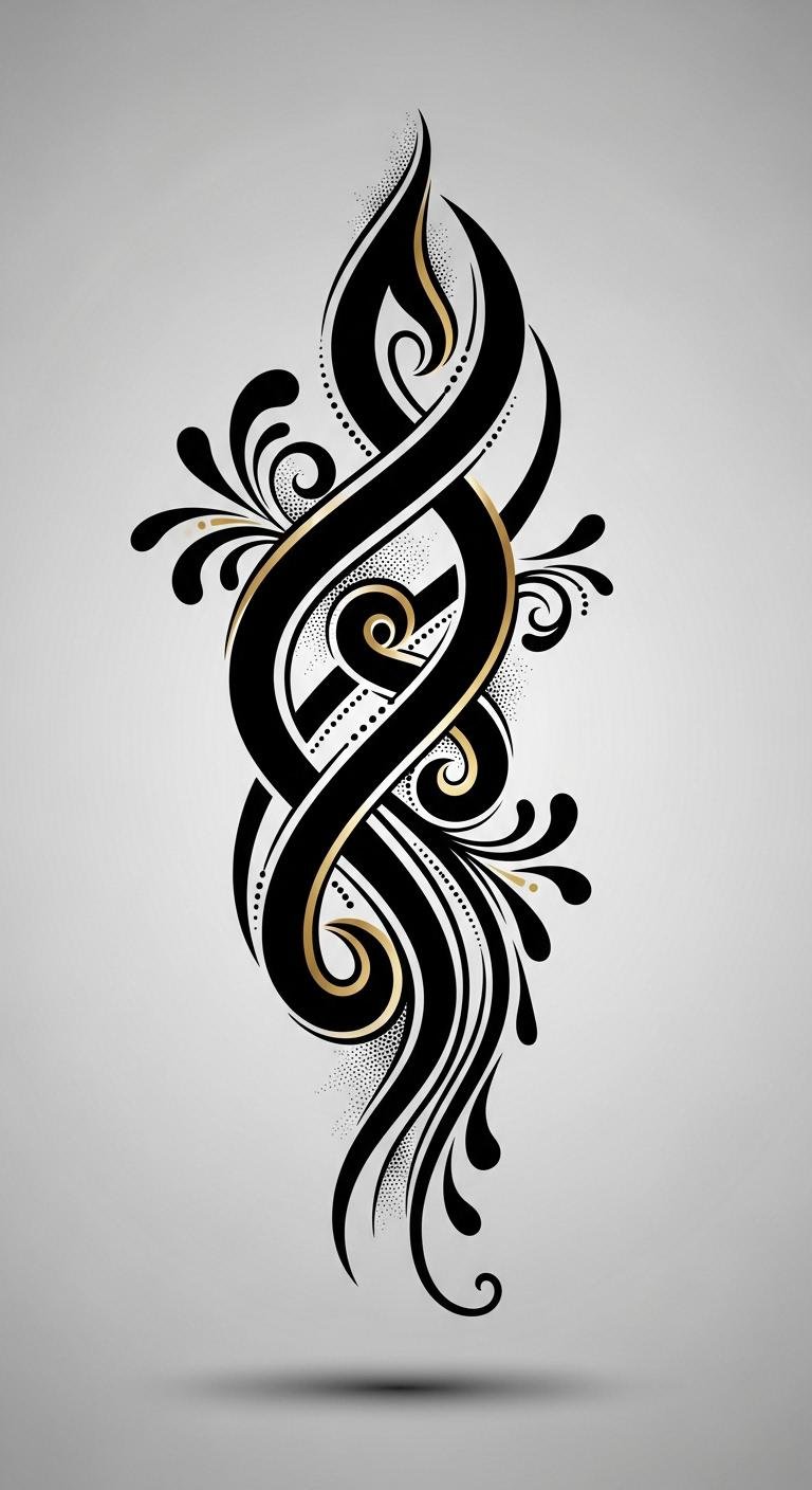 Embrace this symbol as part of the feminist movement, celebrating strength and perseverance. The design emphasizes resilience through flowing curves and twists that mirror personal growth; gold accents add warmth and honor, while negative space conveys adaptability and breathing room.