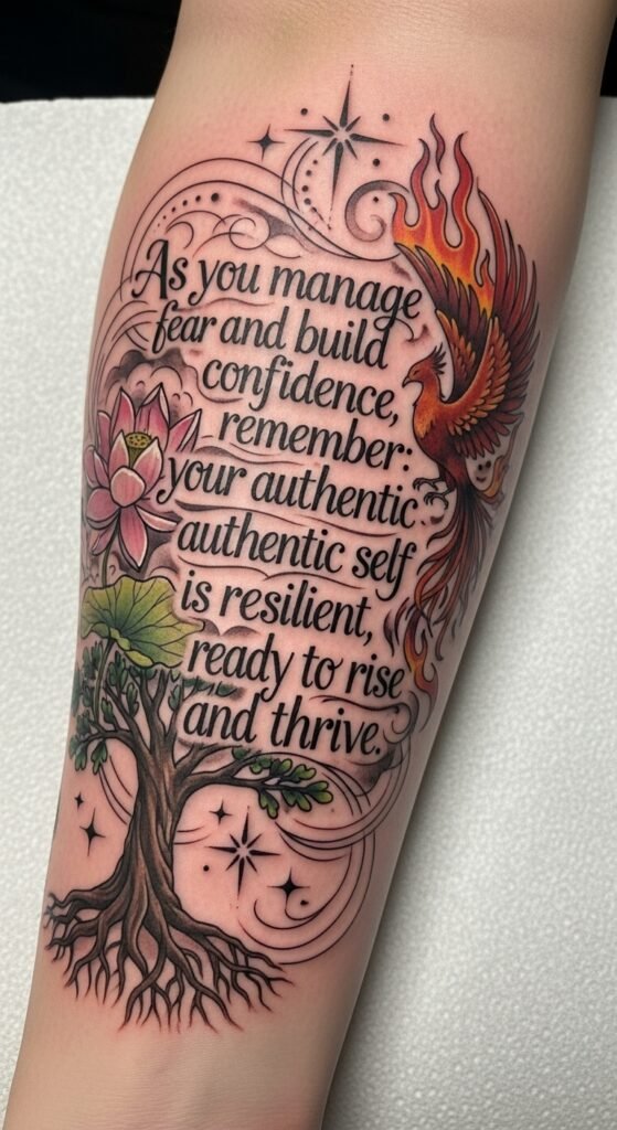 Placement on the forearm or ribcage allows intimate visibility—forearm for public affirmation, ribcage for private reflection—encouraging daily reminders to cultivate resilience, vulnerability, and authentic living.